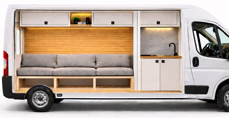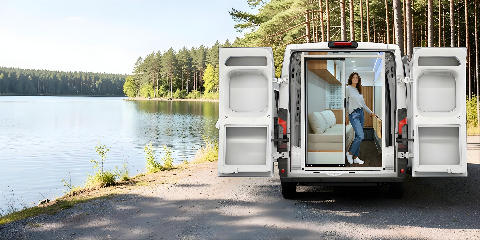 Min. 2,8 m przestrzeni użytkowej, co pozwala na komfortowe gotowanie, spanie oraz swobodne poruszanie się wewnątrz pojazdu.